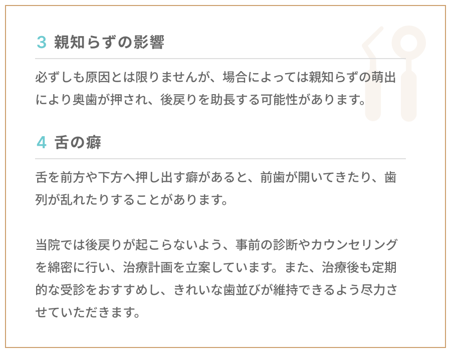 患者さまからよくいただくご質問⑦ 後戻りの原因
